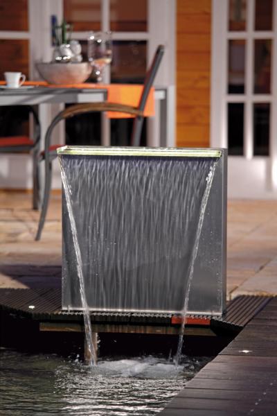 Inštaluje sa na pevný podklad (napr. na betónovú platňu) v pobrežnej plytkej zóne alebo v kombinácii so zásobníkom vody do štrkového lôžka. Zadná časť vodopádu je rozoberateľná a ľahko čistiteľná.